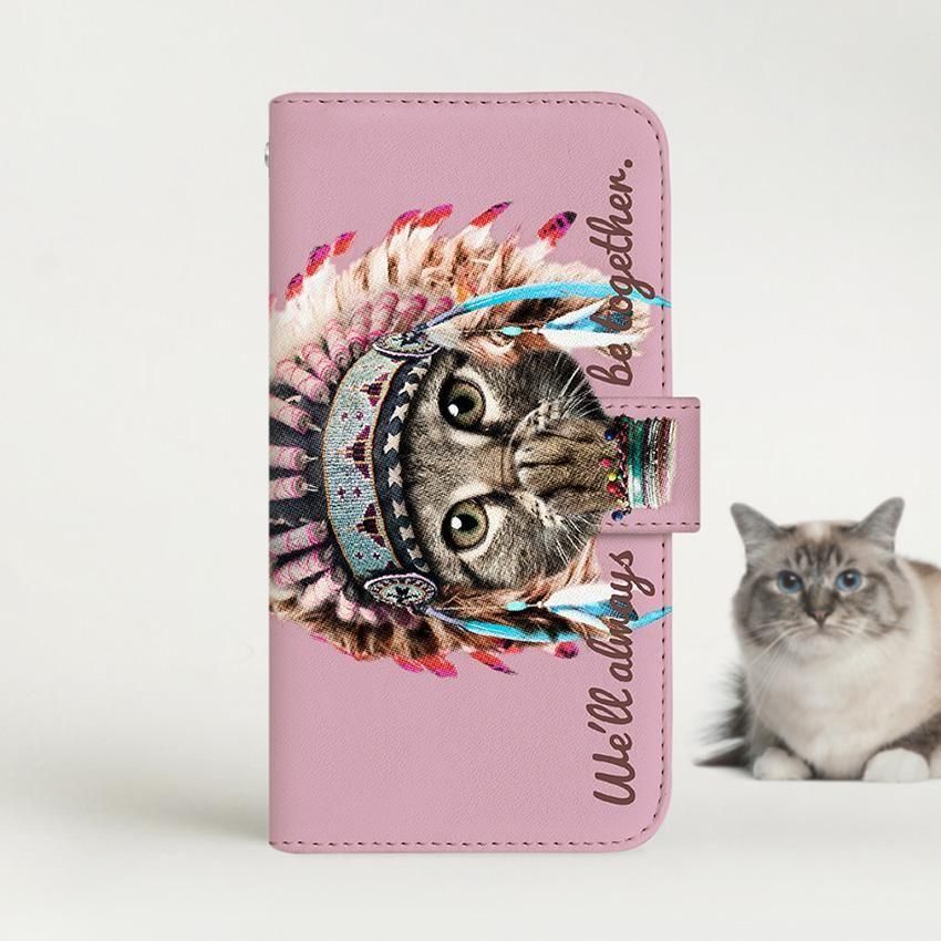 with NYAGO 手帳型 / 厚手 Google Pixel インディアン ソラちゃん 肉球をペロペロするにゃー。 かわいい猫フェイス手帳 スウィート ピンク 7016