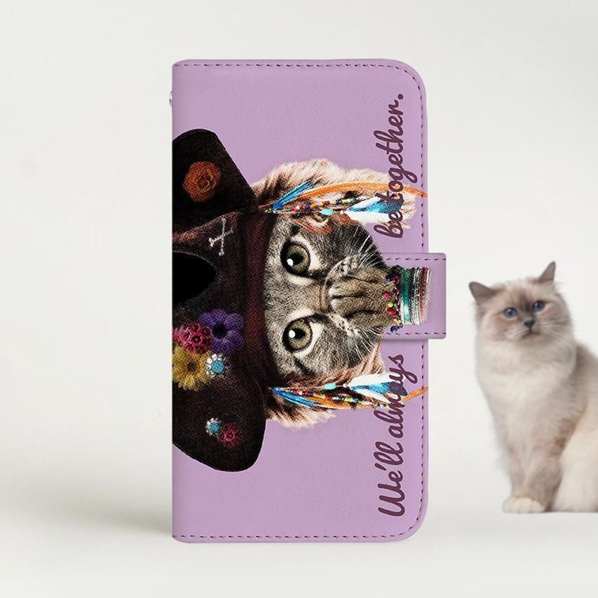 with NYAGO 手帳型 / 厚手 Google Pixel パイレーツ ソラちゃん 肉球をペロペロするにゃー。 かわいい猫フェイス手帳 ライト パープル 7031