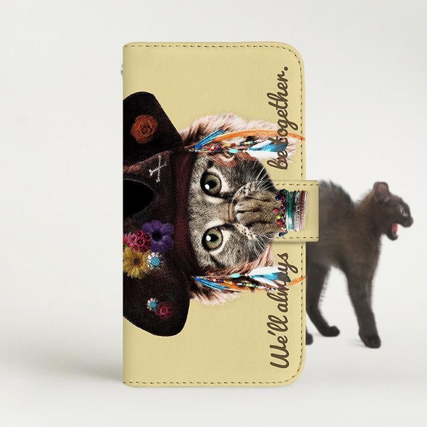 with NYAGO 手帳型 / 厚手 Google Pixel パイレーツ ソラちゃん 肉球をペロペロするにゃー。 かわいい猫フェイス手帳 クリーム イエロー 7034