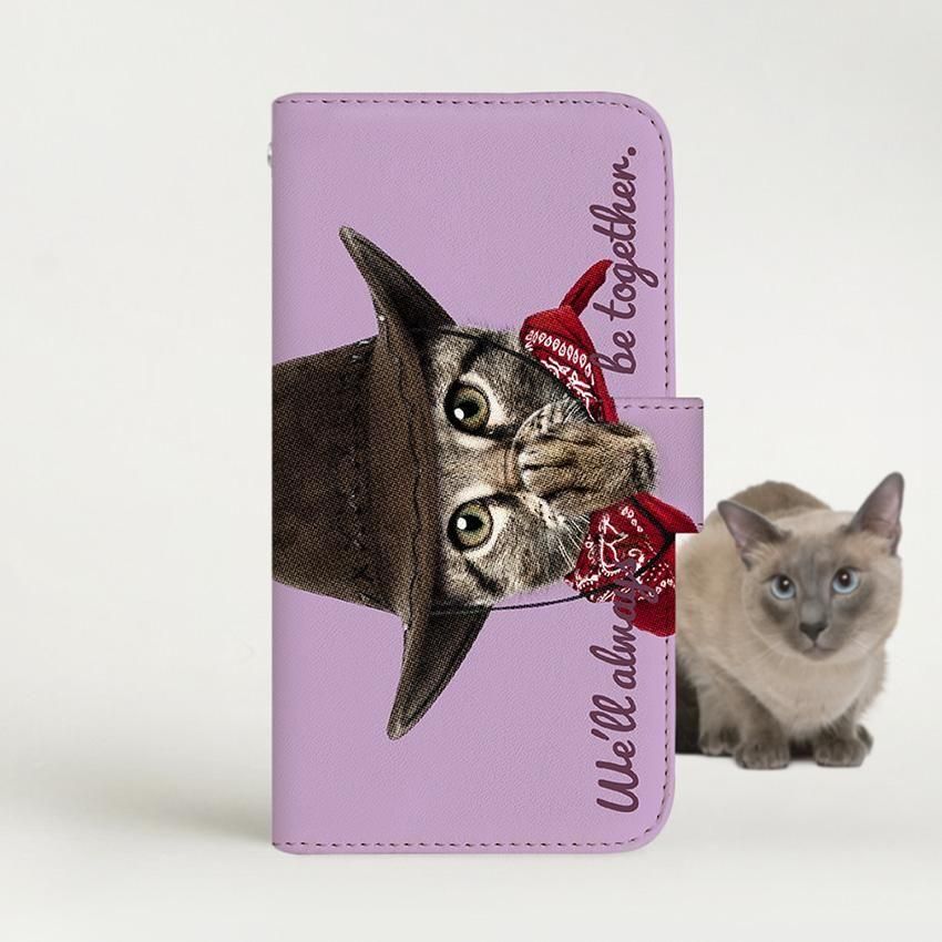 with NYAGO 手帳型 / 厚手 Google Pixel カウボーイ ソラちゃん 肉球をペロペロするにゃー。 かわいい猫フェイス手帳 ライト パープル 7038