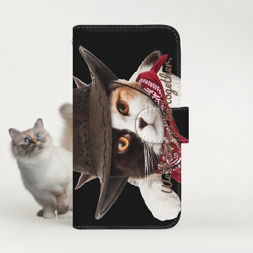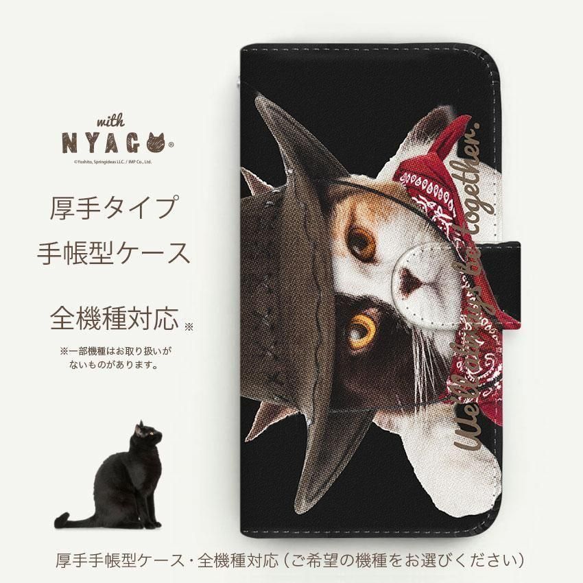 with NYAGO 手帳型 / 厚手 Google Pixel カウボーイ オスカーちゃん 肉球をペロペロするにゃー。 かわいい猫フェイス手帳 ブラック 7087