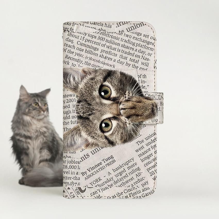 with NYAGO 手帳型 / 厚手 Google Pixel ソラちゃん 肉球をペロペロするにゃー。 英字新聞 デザイン かわいい猫フェイス手帳 ホワイト 7110