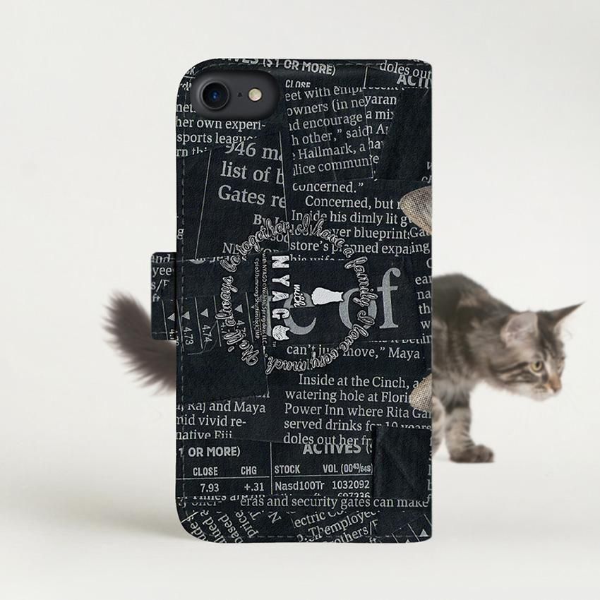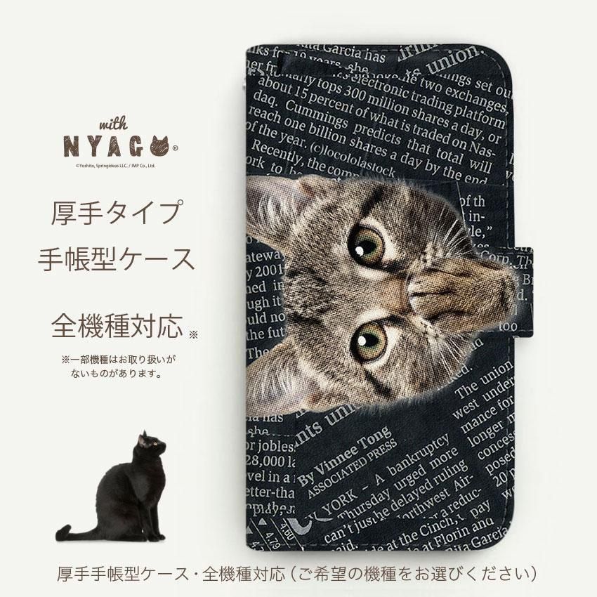 with NYAGO 手帳型 / 厚手 Google Pixel ソラちゃん 肉球をペロペロするにゃー。 英字新聞 デザイン かわいい猫フェイス手帳 ブラック 7111