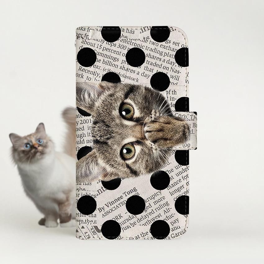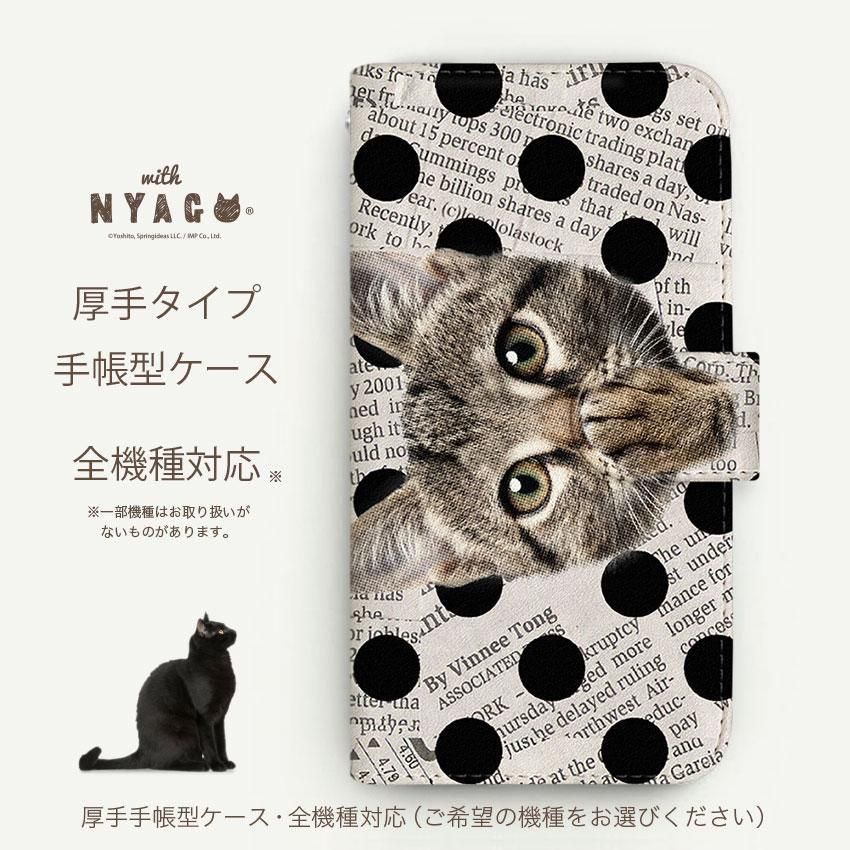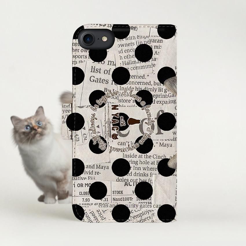 with NYAGO 手帳型 / 厚手 Google Pixel ソラちゃん 肉球をペロペロするにゃー。 ドット 英字新聞 かわいい猫フェイス手帳 ブラック ドット 7114