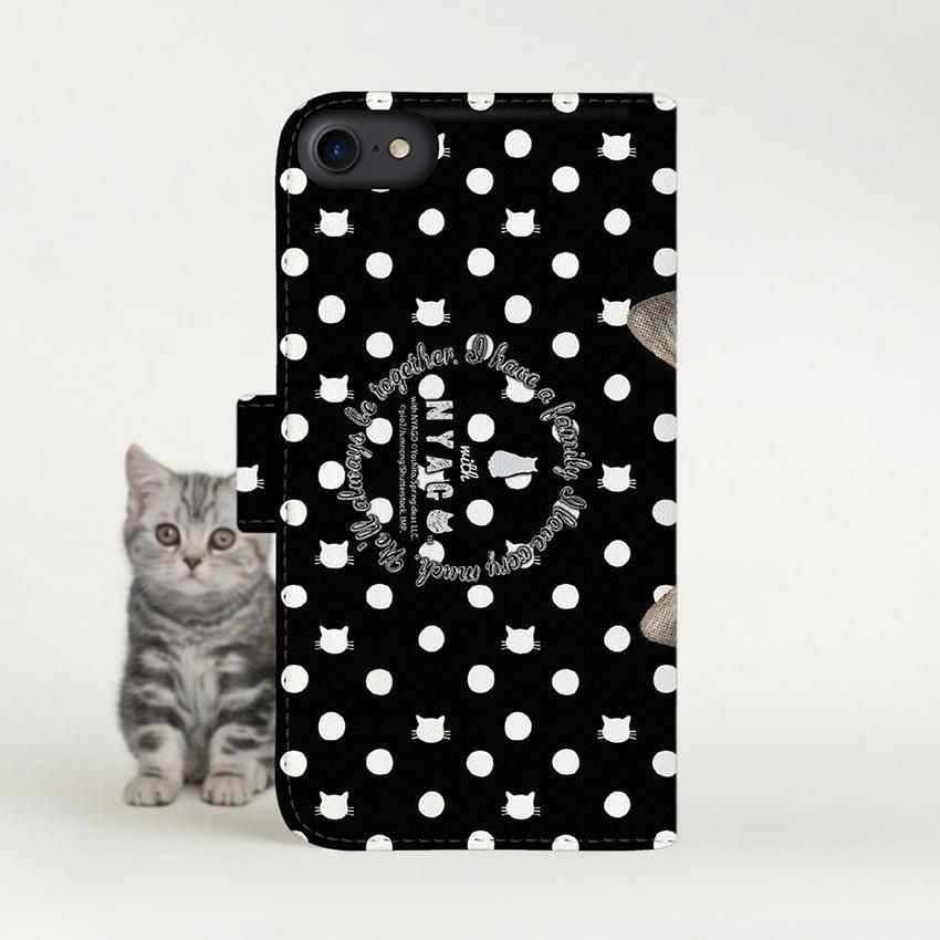 with NYAGO 手帳型 / 厚手 Google Pixel ソラちゃん 肉球をペロペロするにゃー。 猫 ドット 水玉 かわいい猫フェイス手帳 ホワイト ドット 7119
