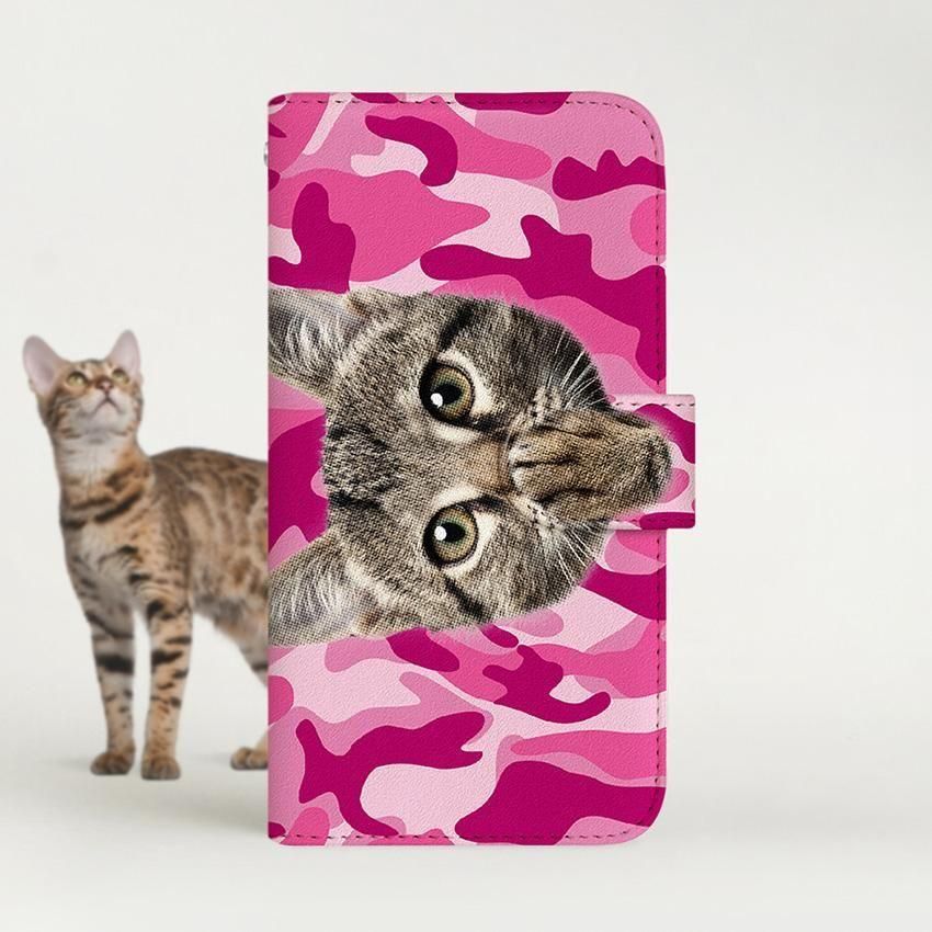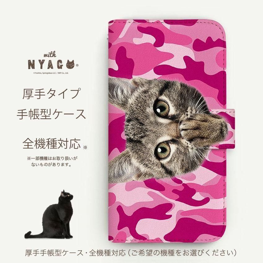 with NYAGO 手帳型 / 厚手 Google Pixel ソラちゃん 肉球をペロペロするにゃー。 迷彩柄 カモ柄 かわいい猫フェイス手帳 ピンク 7122