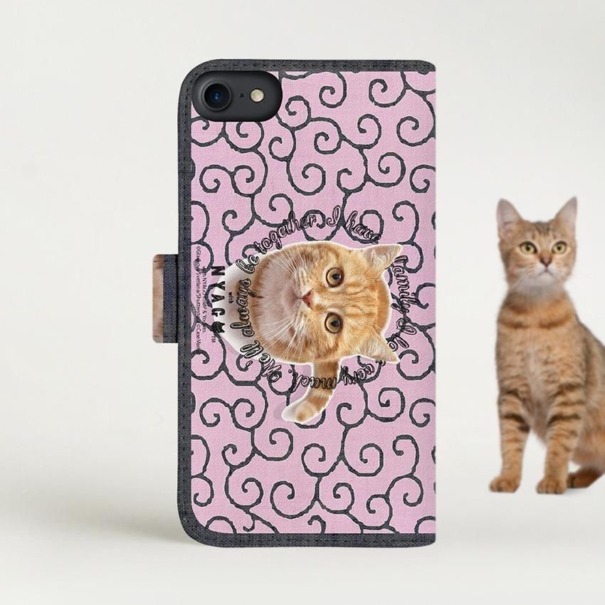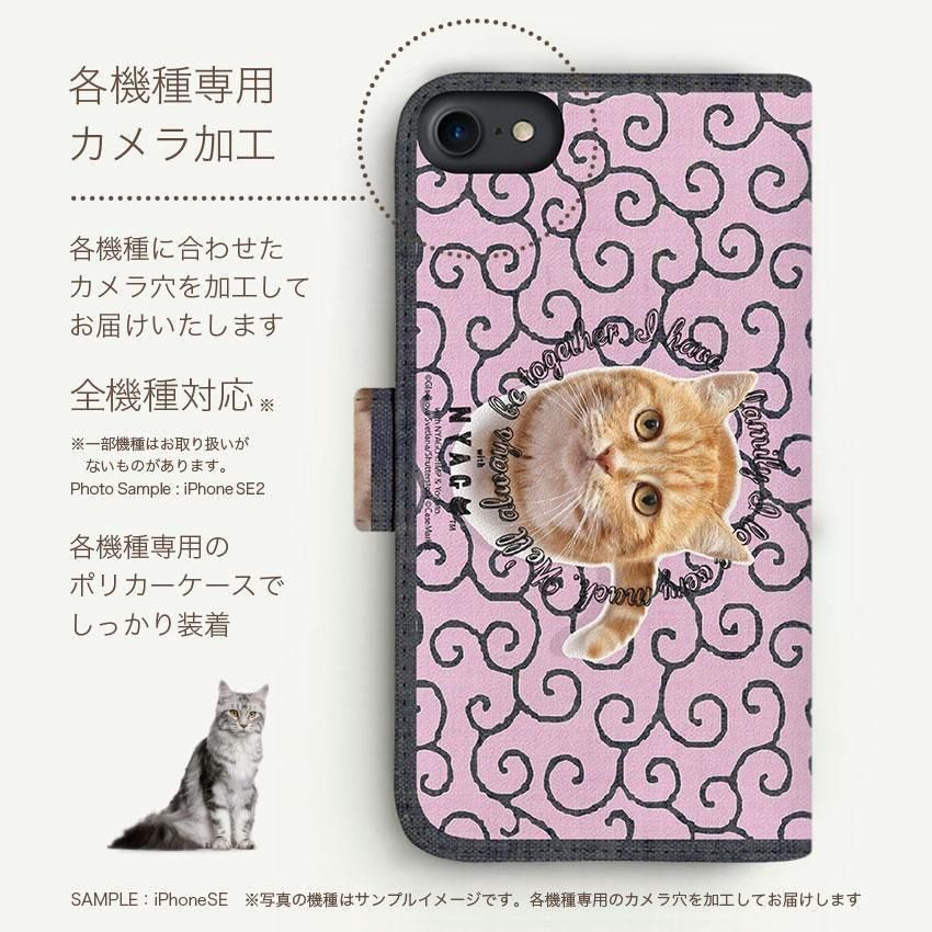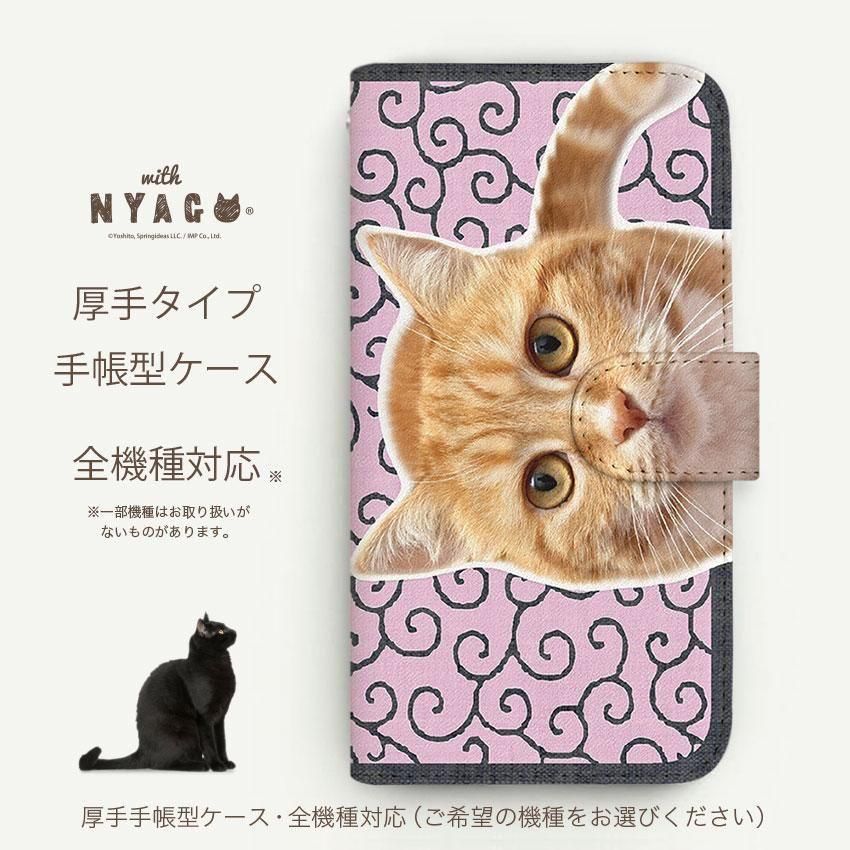 with NYAGO 手帳型 / 厚手 Google Pixel NYAGO ノート キュート 甘えんぼう 茶トラ 猫 ペロペロするにゃ〜。 にゃんとも 和風 だにゃ~。 唐草模様 ピンク 2760