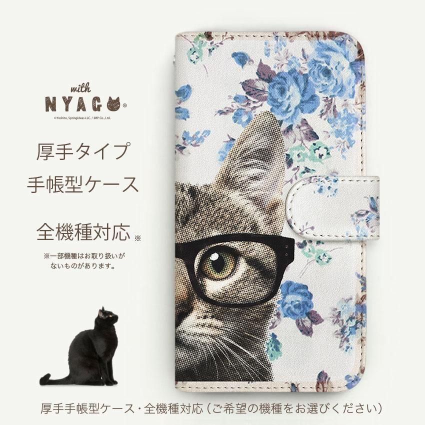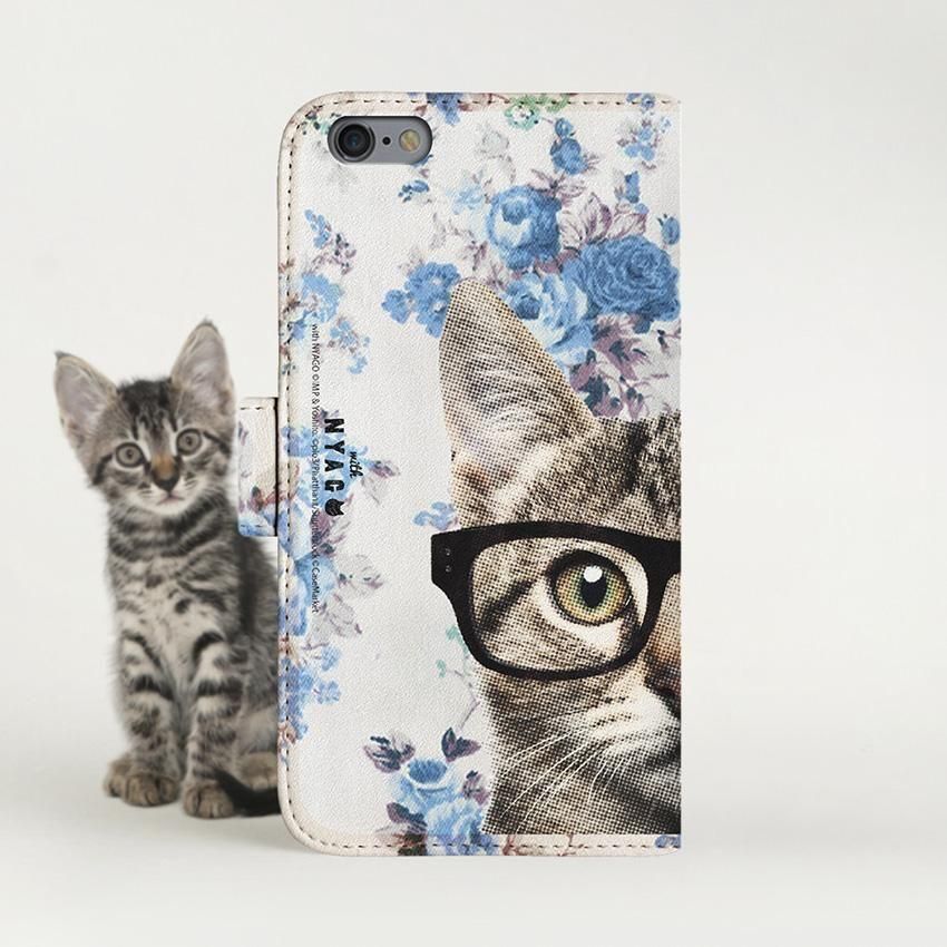 with NYAGO 手帳型 / 厚手 Google Pixel NYAGO キュート メガネ フェイス キャット - サマー フラワー だにゃ〜。 - ブルー 2726
