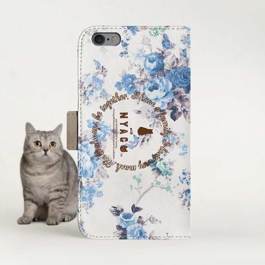 with NYAGO 手帳型 / 厚手 Google Pixel NYAGO ナチュラル サマー フラワー ドット 猫のはなチュー ペロペロだにゃ〜。- 猫ちゃん顔アップ - ブルー 2724