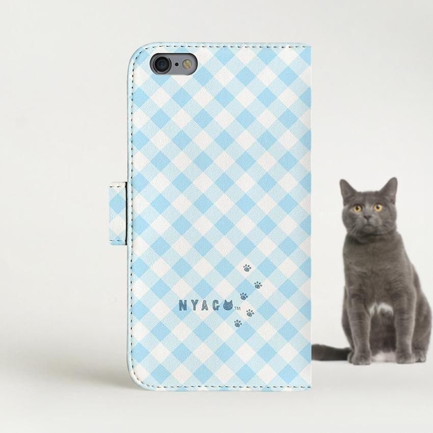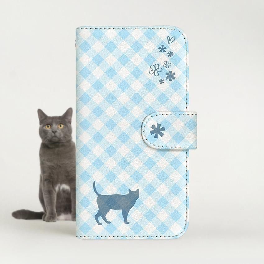 with NYAGO 手帳型 / 厚手 Google Pixel NYAGO サマー フラワー ダイアリー キャット シルエット ブルー チェッククロス柄 なんだにゃ? 2671