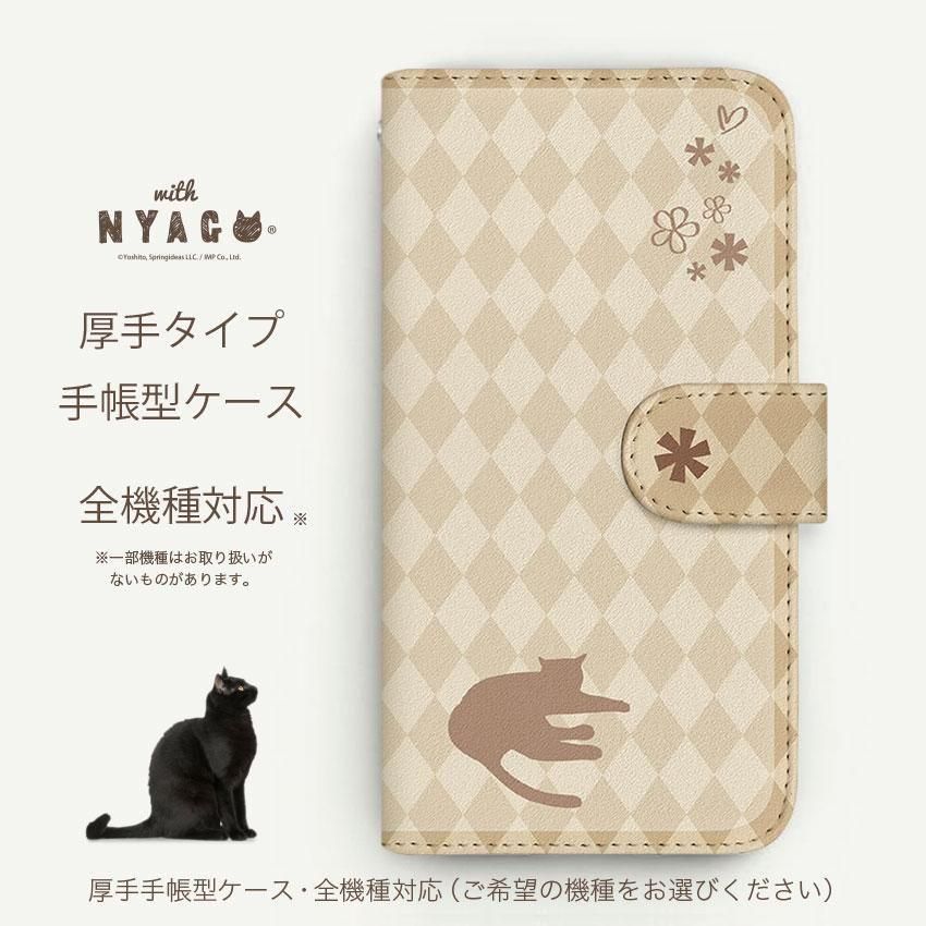 with NYAGO 手帳型 / 厚手 Google Pixel NYAGO フレンチ フラワー キャット シルエット ダイヤ柄 & ごろにゃん? クリーム 2460