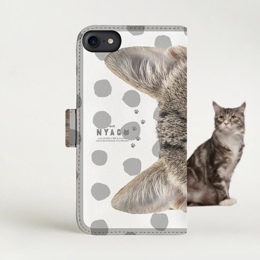 with NYAGO 手帳型 / 厚手 Google Pixel NYAGO ぺろぺろ にゃー べろぺろり。 カラー ドット ダイアリー ライト グレー 2292