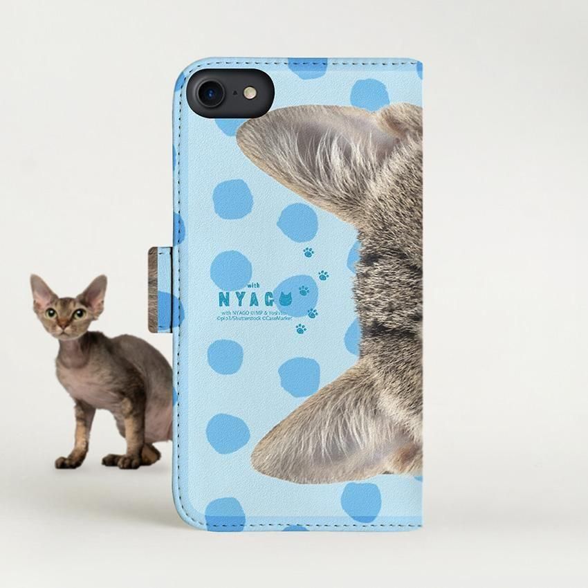 with NYAGO 手帳型 / 厚手 Google Pixel NYAGO ぺろぺろ にゃー べろぺろり。 カラー ドット ダイアリー ライト ブルー 2287
