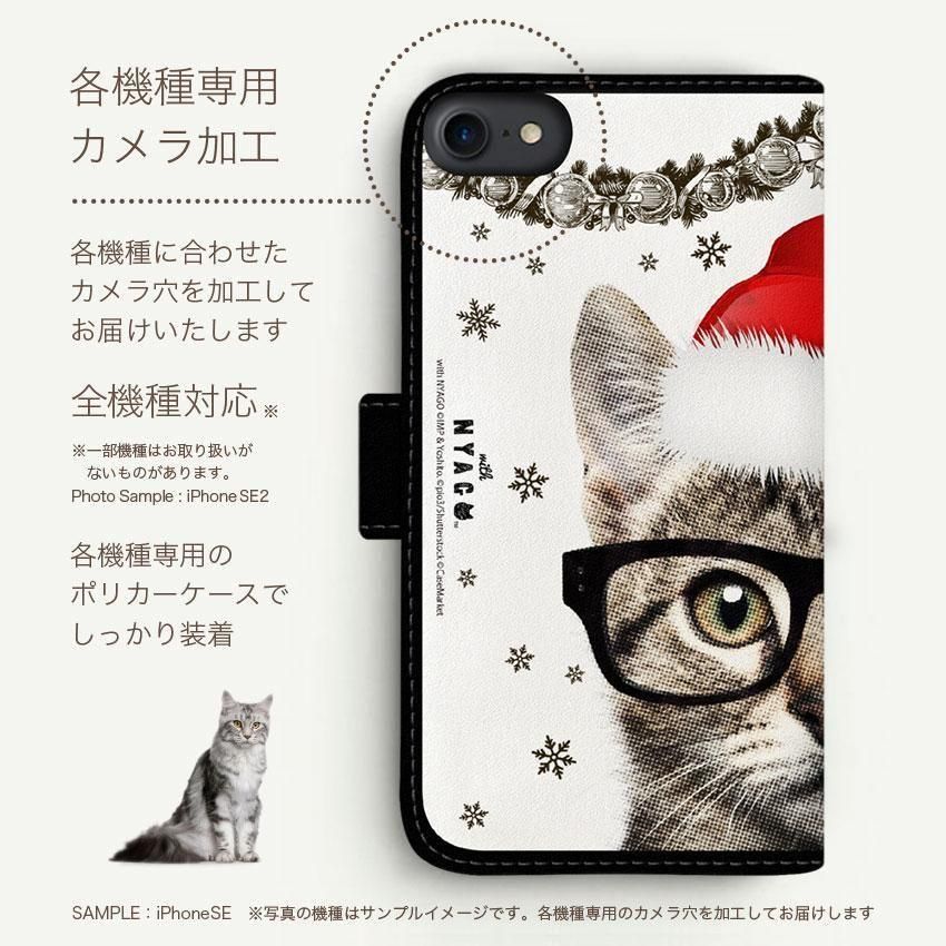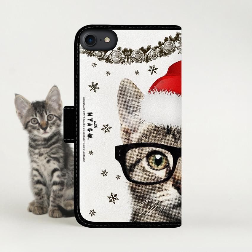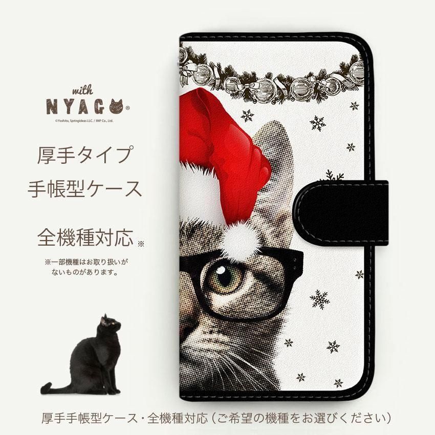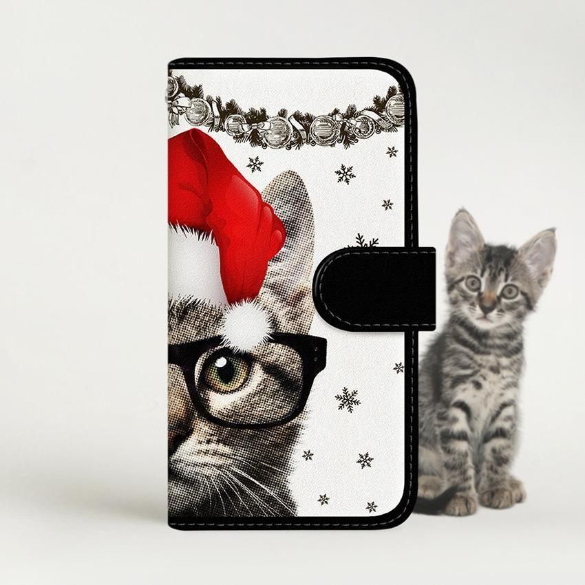 with NYAGO 手帳型 / 厚手 Google Pixel メガネ フェイス キャット サンタクロース。 かわいい猫 2180