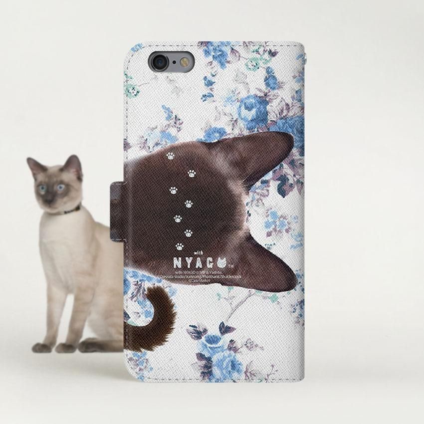 with NYAGO 手帳型 / 薄型 Google Pixel NYAGO ノート キュート 肉球をペロペロするにゃ~。 - シャムちゃん サマー フラワー だにゃ~。 ブルー 2728