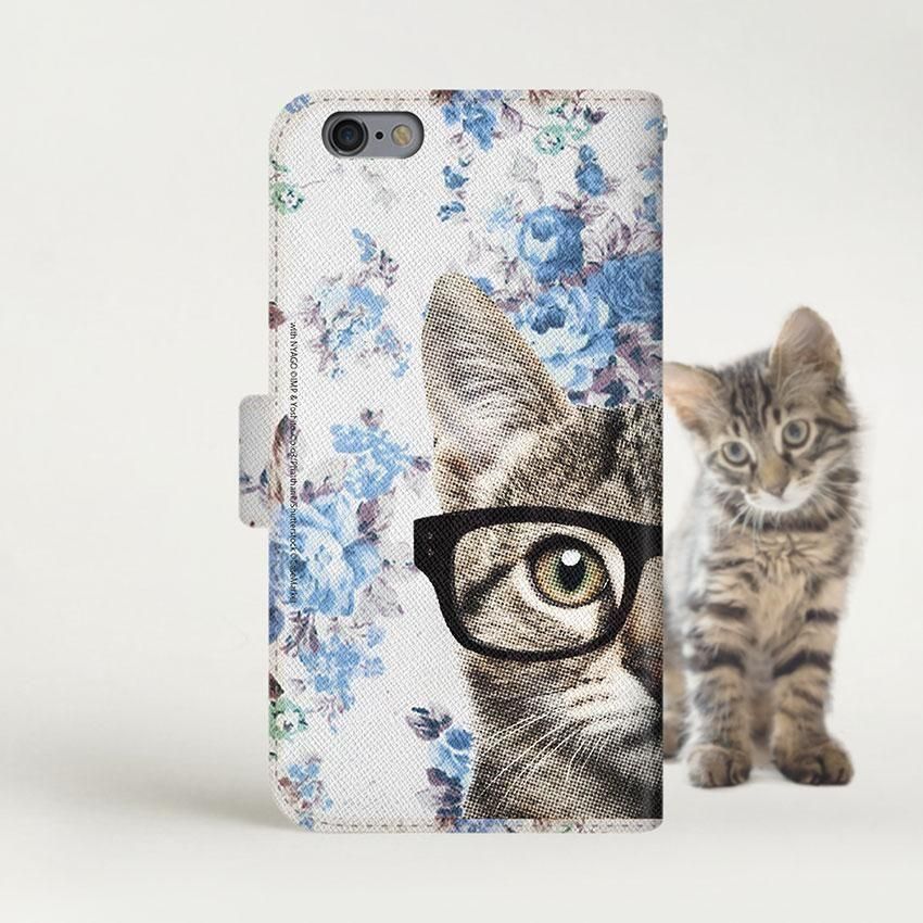 with NYAGO 手帳型 / 薄型 Google Pixel NYAGO ノート キュート メガネ フェイス キャット - サマー フラワー だにゃ〜。 - ブルー 2726