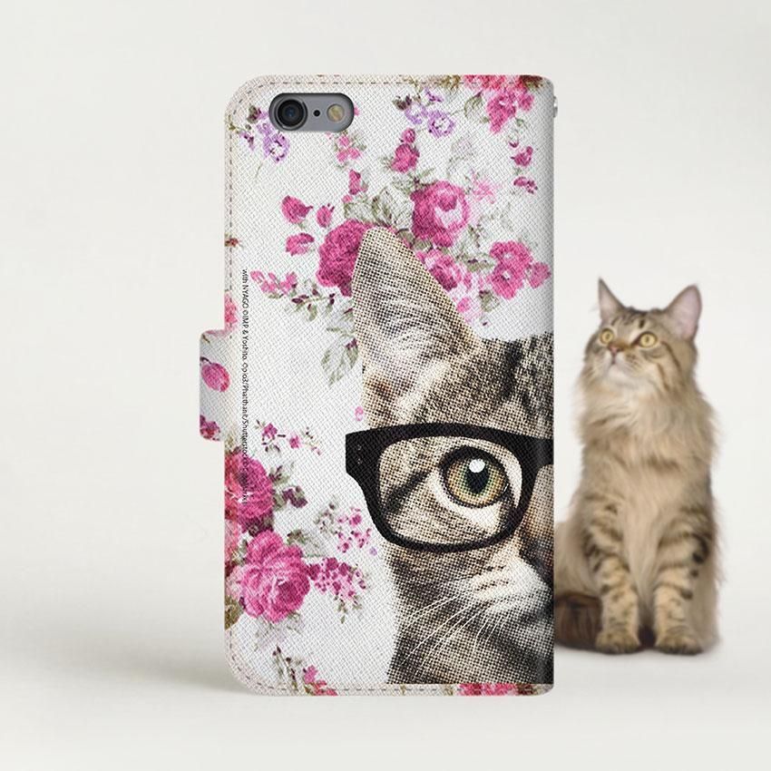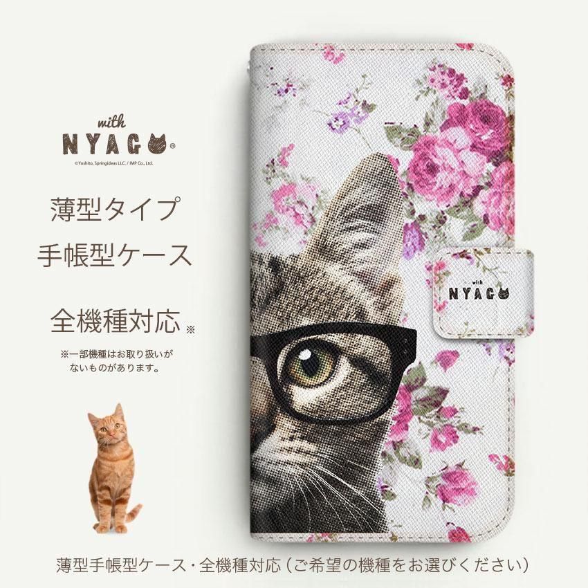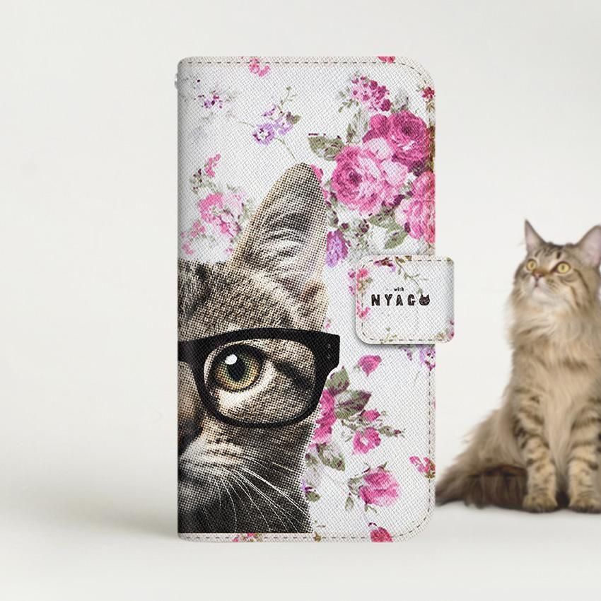 with NYAGO 手帳型 / 薄型 Google Pixel NYAGO ノート キュート メガネ フェイス キャット - サマー フラワー だにゃ〜。 - ピンク 2725