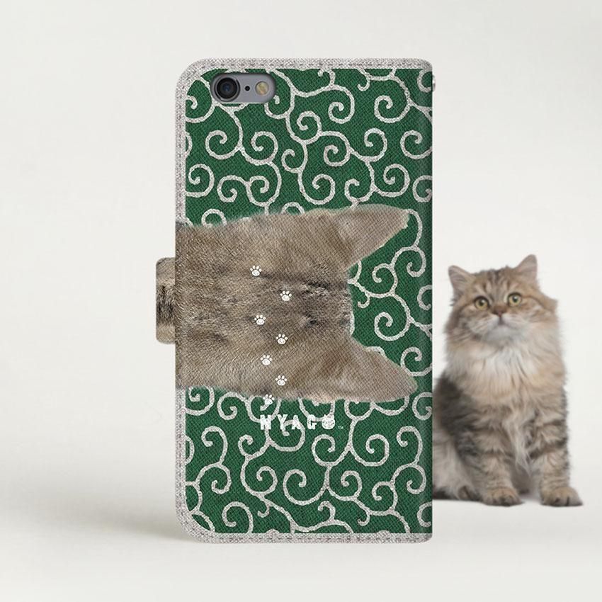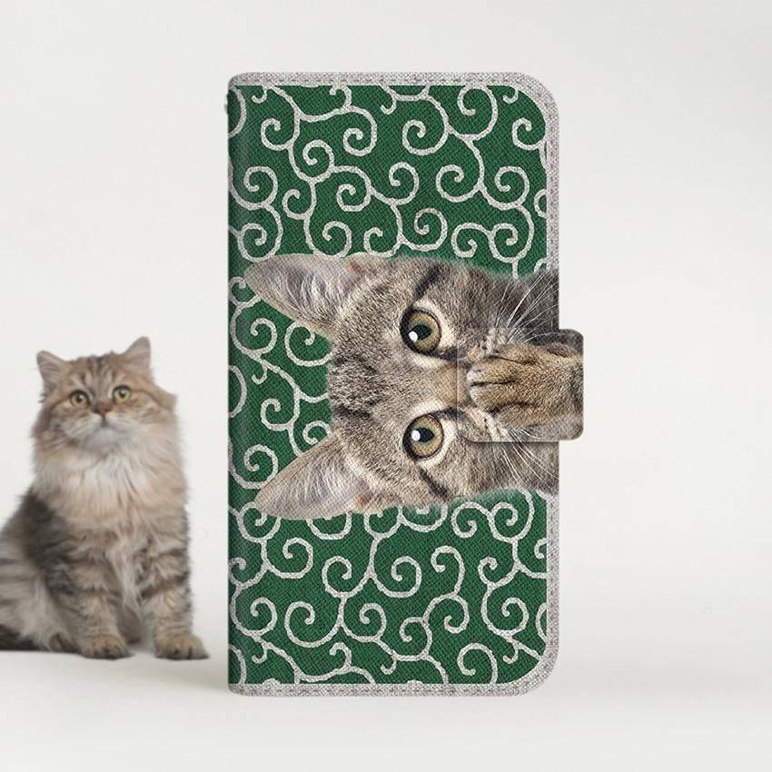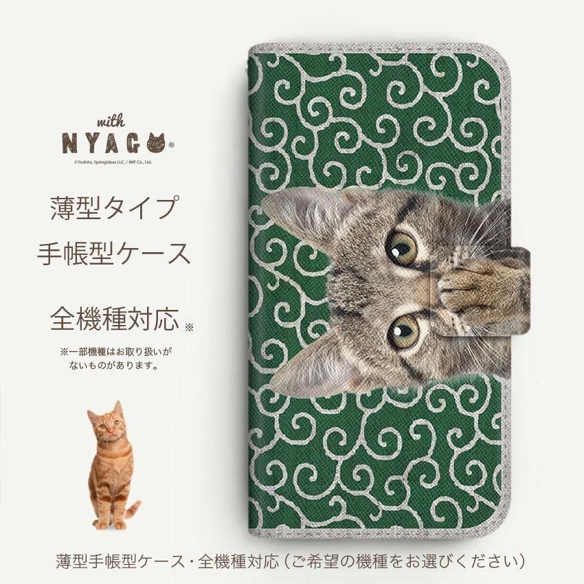 with NYAGO 手帳型 / 薄型 Google Pixel NYAGO ノート キュート 肉球をペロペロするにゃ〜。 - にゃんとも 和風 だにゃ〜。 唐草模様 緑 2449