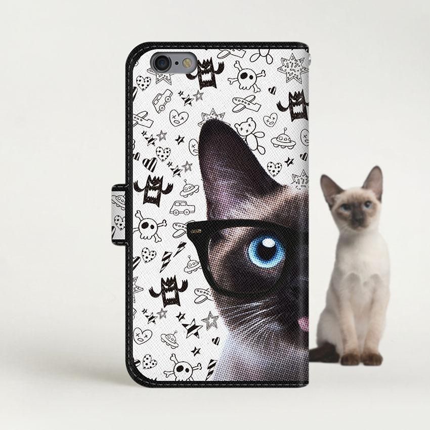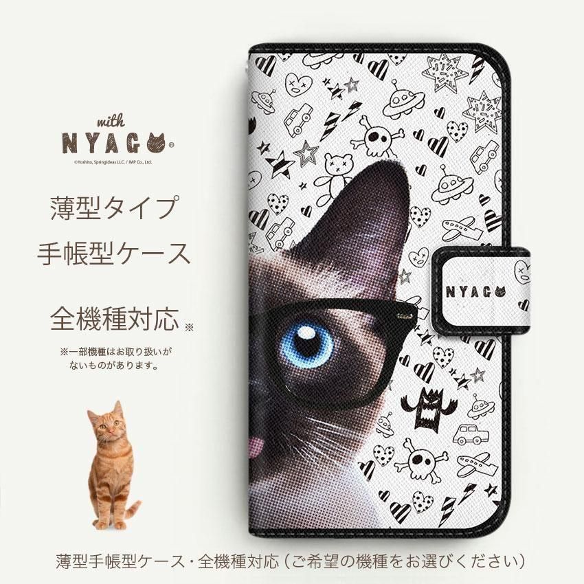 with NYAGO 手帳型 / 薄型 Google Pixel NYAGO ノート キュート メガネ フェイス キャット シャム 2247