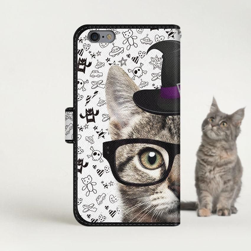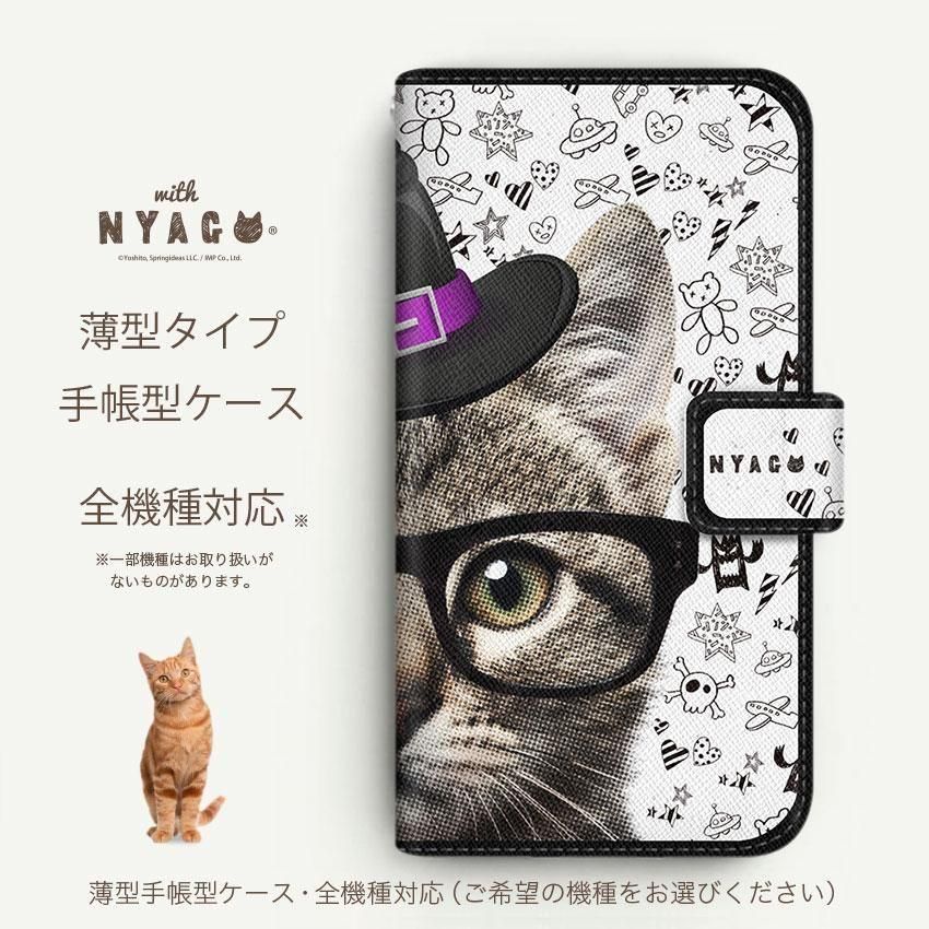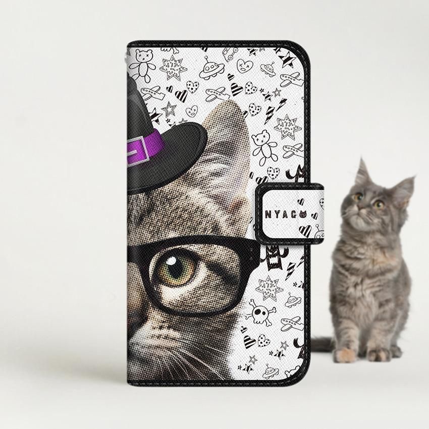 with NYAGO 手帳型 / 薄型 Google Pixel NYAGO ノート キュート メガネ フェイス キャット キュート バック イラスト 2248