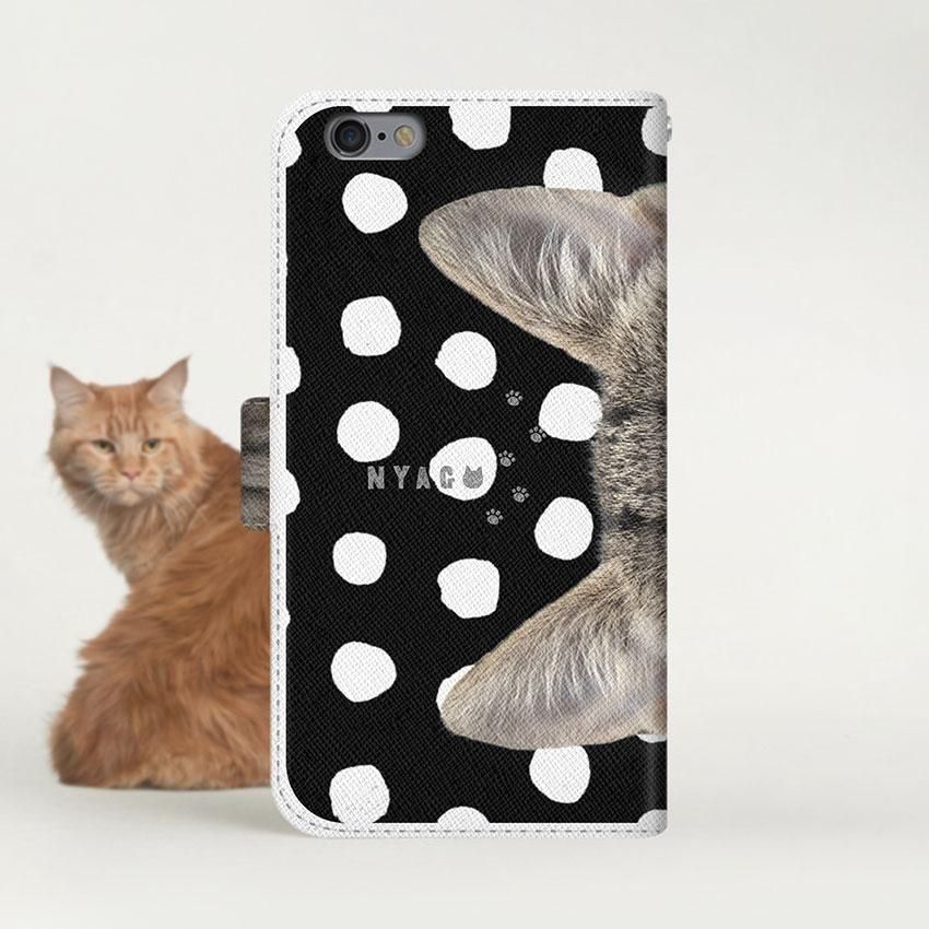 with NYAGO 手帳型 / 薄型 Google Pixel NYAGO ぺろぺろ にゃー べろぺろり。ノート スリム カラー ドット ダイアリー ブラック 2284