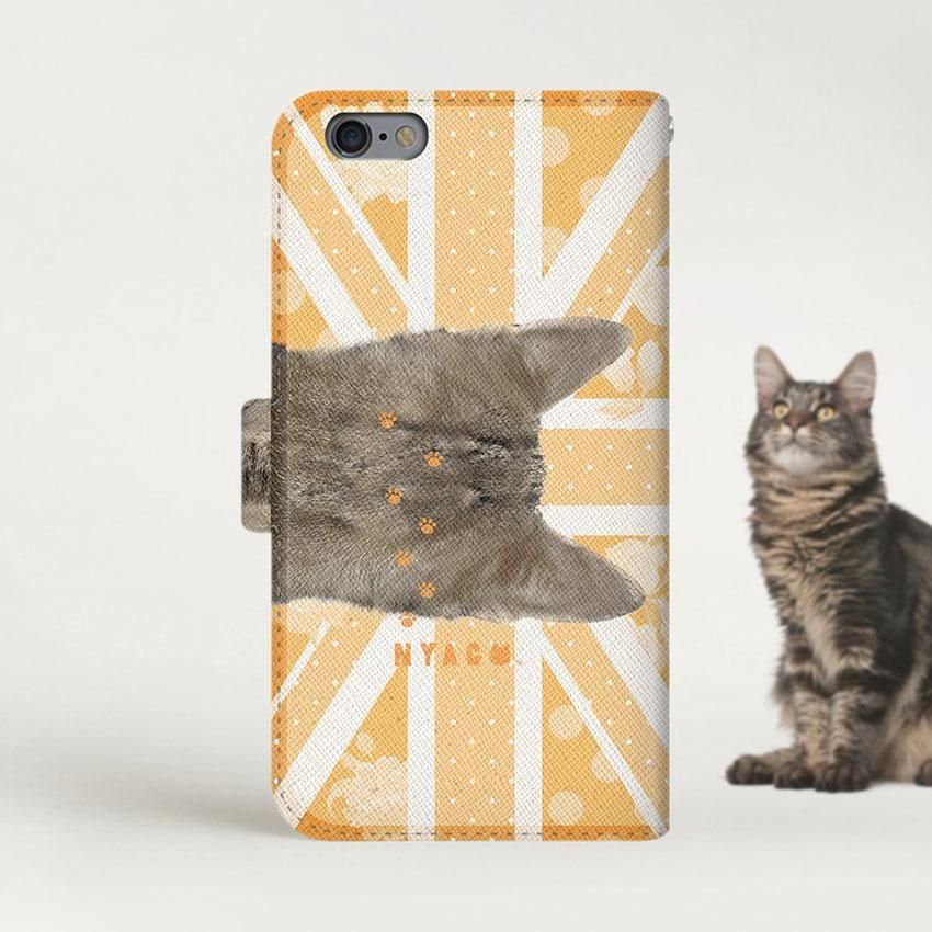 with NYAGO 手帳型 / 薄型 Google Pixel NYAGO ノート キュート 肉球をペロペロするにゃ〜。 - にゃんとも ユニオンジャック だにゃ〜。 オレンジ 2433