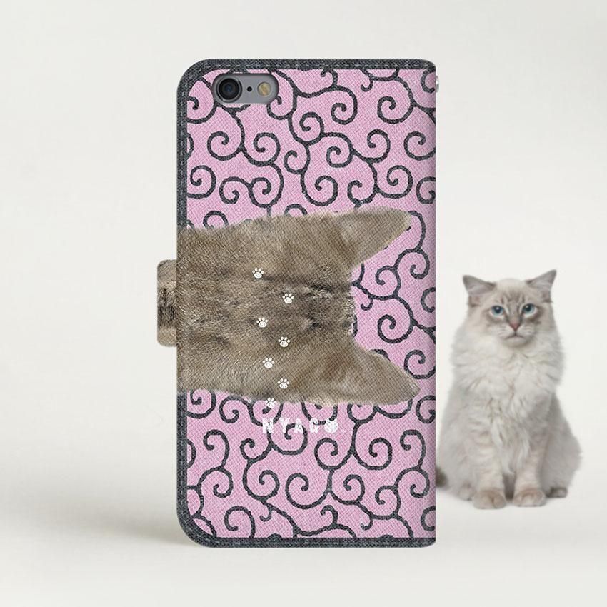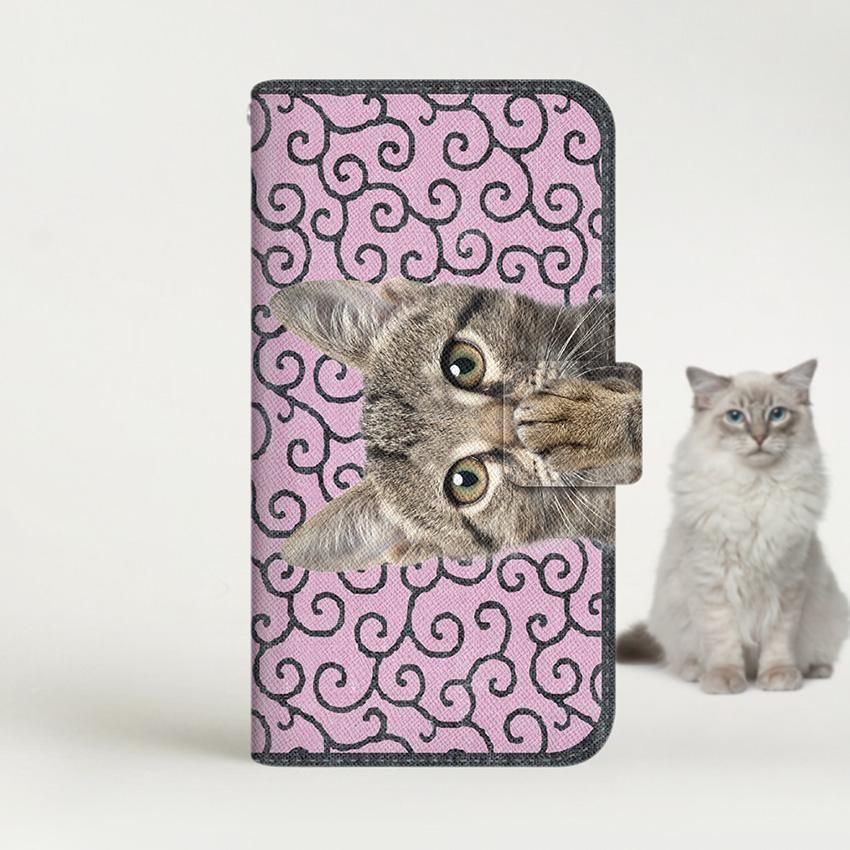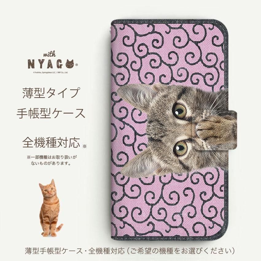 with NYAGO 手帳型 / 薄型 Google Pixel NYAGO ノート キュート 肉球をペロペロするにゃ〜。 - にゃんとも 和風 だにゃ〜。 唐草模様 ピンク 2450