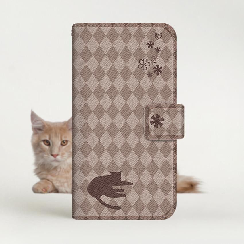 with NYAGO 手帳型 / 薄型 Google Pixel NYAGO ノート フレンチ フラワー ダイアリー キャット シルエット ダイヤ柄 & ごろにゃん? チョコレート 2461