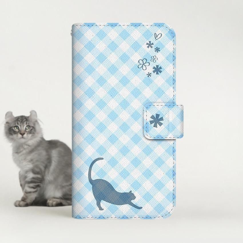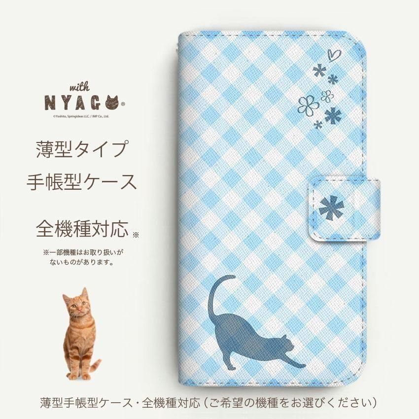 with NYAGO 手帳型 / 薄型 Google Pixel NYAGO ノート サマー フラワー ダイアリー キャット シルエット - ブルー チェッククロス柄 & のびのび〜! 2672