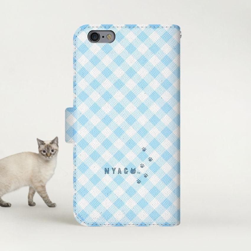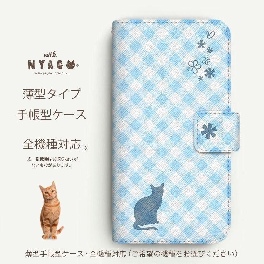with NYAGO 手帳型 / 薄型 Google Pixel NYAGO ノート サマー フラワー ダイアリー キャット シルエット - ブルー チェッククロス柄 & おすましだにゃ 2673