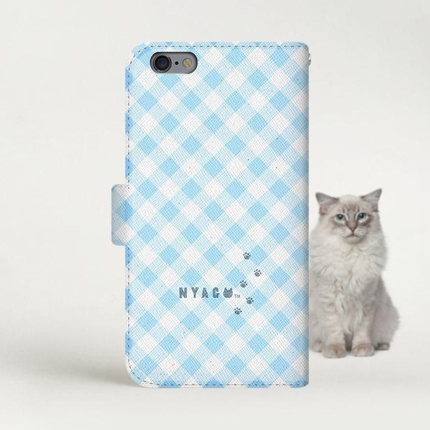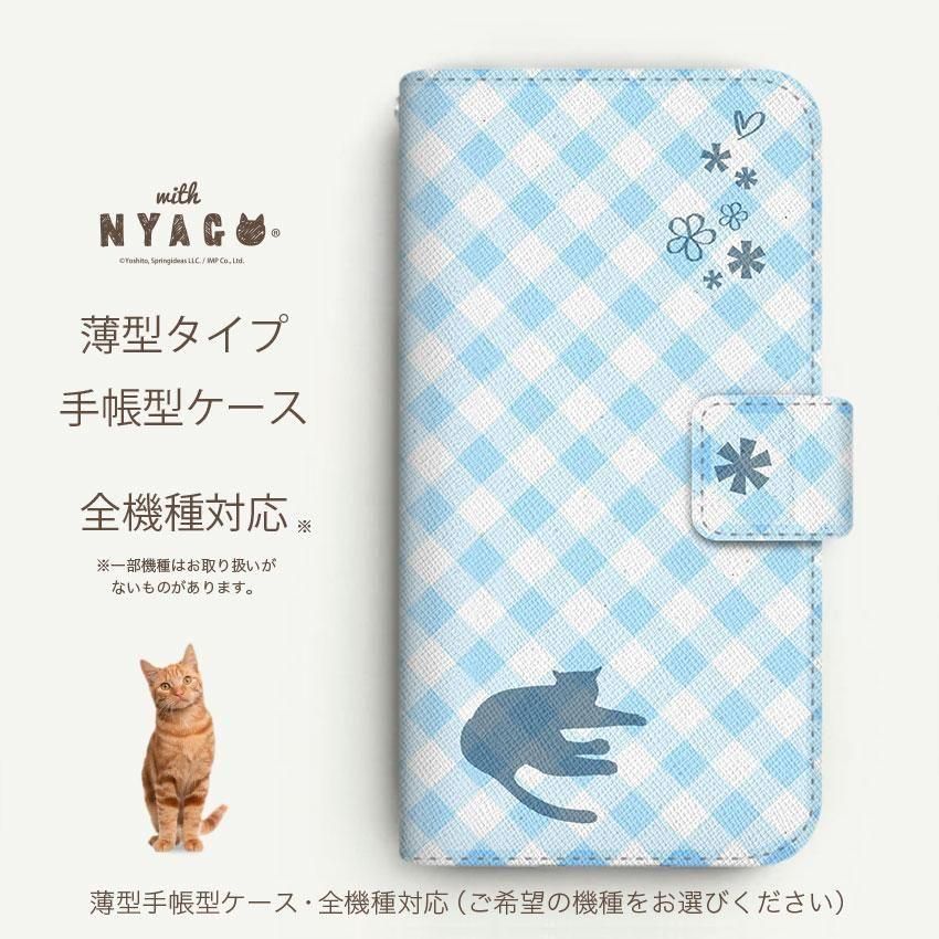 with NYAGO 手帳型 / 薄型 Google Pixel NYAGO ノート サマー フラワー ダイアリー キャット シルエット - ブルー チェッククロス柄 & ごろにゃん〜 2674