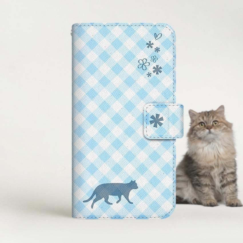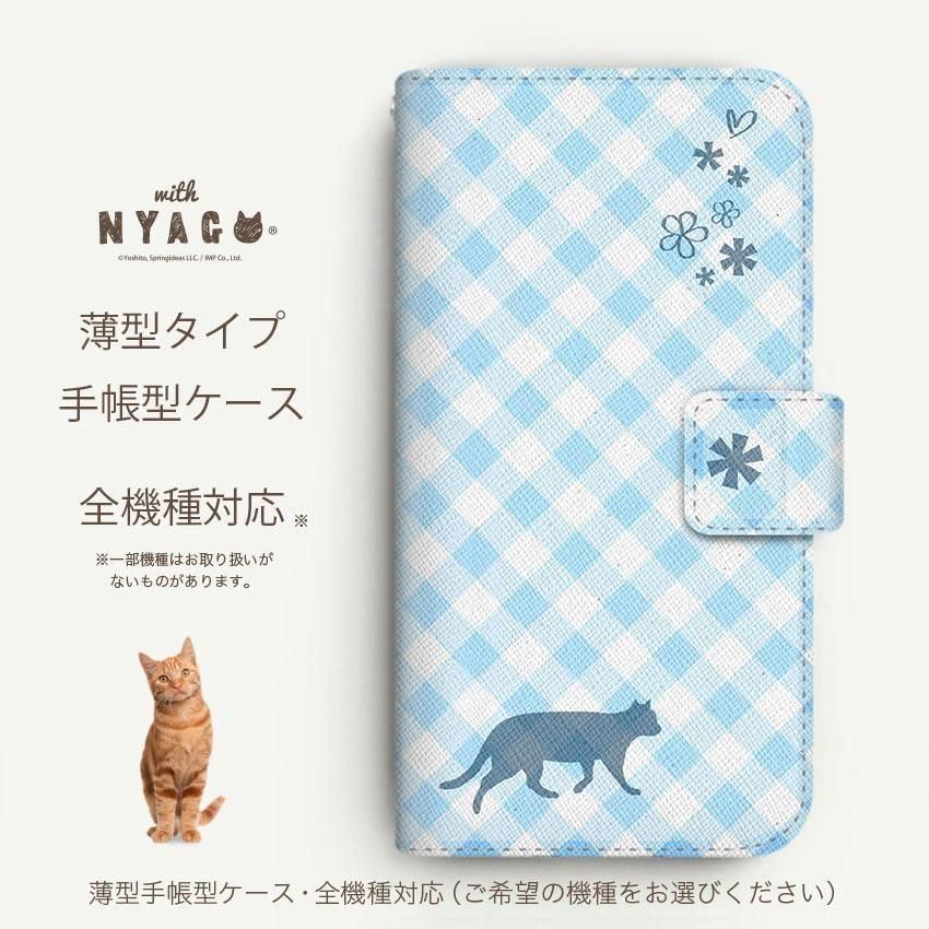 with NYAGO 手帳型 / 薄型 Google Pixel NYAGO ノート サマー フラワー ダイアリー キャット シルエット - ブルー チェッククロス柄 & てくてくお散歩 2675