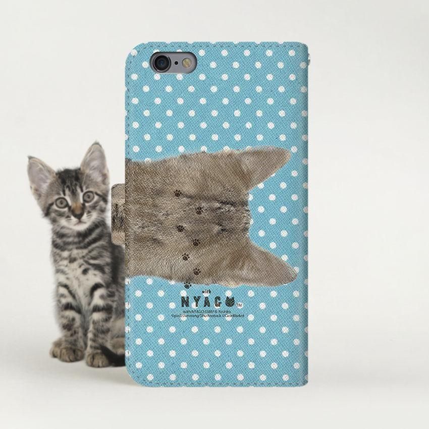 with NYAGO 手帳型 / 薄型 Google Pixel NYAGO ノート キュート 肉球をペロペロするにゃ〜。 - サマー ドット だにゃ〜。 - ミントブルー 2713