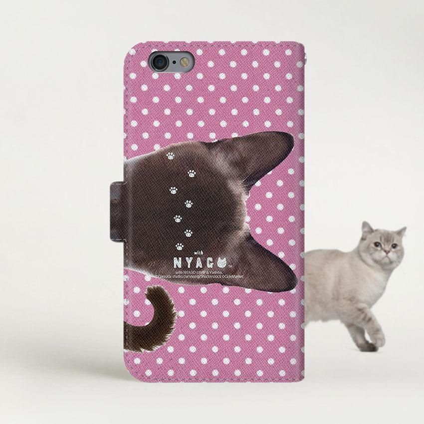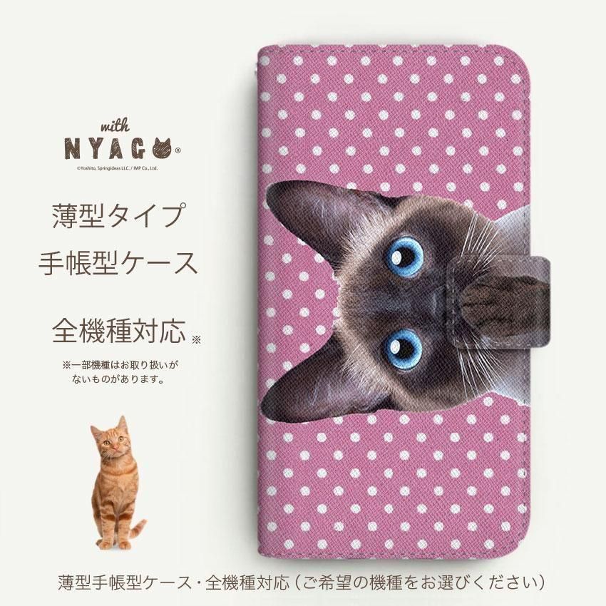 with NYAGO 手帳型 / 薄型 Google Pixel NYAGO ノート キュート 肉球をペロペロするにゃ〜。 - シャムちゃん サマー ドット だにゃ〜。 - ピンク 2720