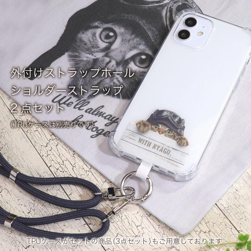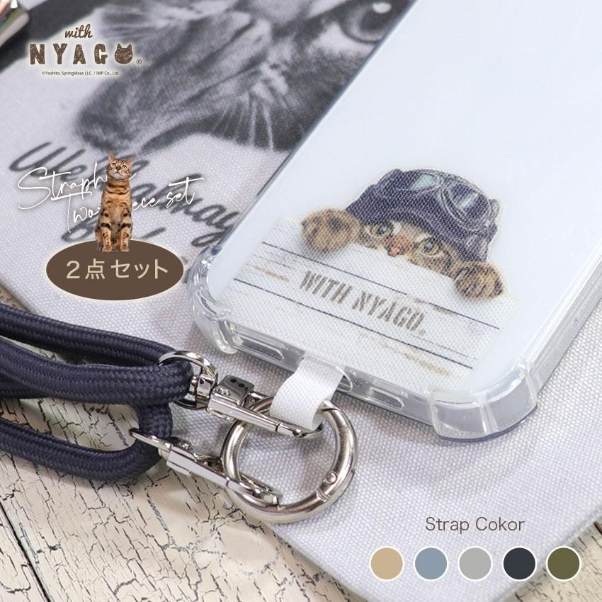 スマホショルダー 猫 ネコ柄 【2点セット】【クリアケースなし】【 with NYAGO 】【 パイロットソラちゃんキョロキョロするにゃー。 キジトラ 】 挟むだけ スマホアクセサリー 斜め掛け