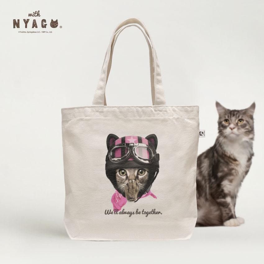 with NYAGO トートバッグ キャンバストート 【 ソラちゃん 肉球をペロペロするにゃ ライダー ピンク -1007 】